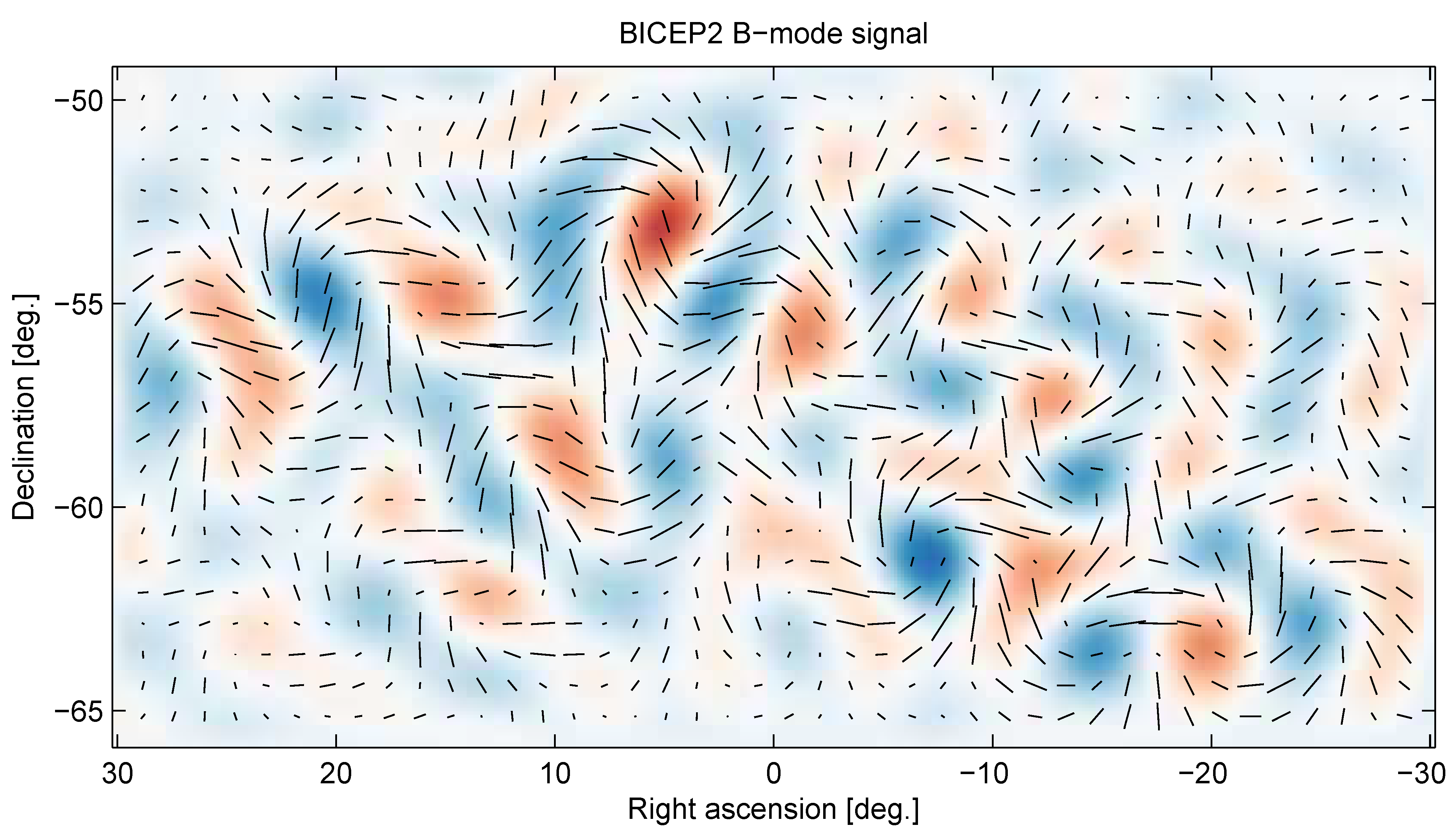 "BICEP2 I: Detection of B-Mode Polarization at Degree Angular Scales by BICEP2" 2014. BICEP2 Collaboration. arXiv:1403.3985
